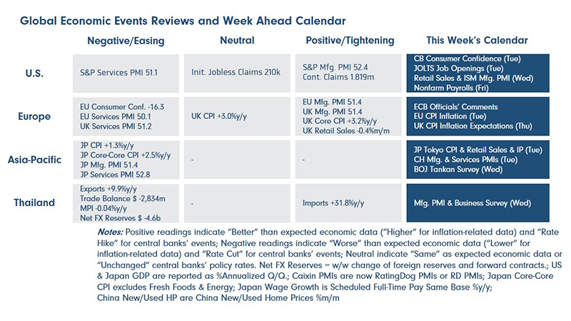 สำหรับสัปดาห์นี้รวมถึงในช่วงระยะสั้น เราประเมินว่า ควรจับตาสถานการณ์การสู้รบในตะวันออกกลาง อย่างใกล้ชิด พร้อมรอลุ้น รายงานข้อมูลตลาดแรงงานของสหรัฐฯ โดยเฉพาะยอดการจ้างงานนอกภาคเกษตรกรรม (Nonfarm Payrolls)
