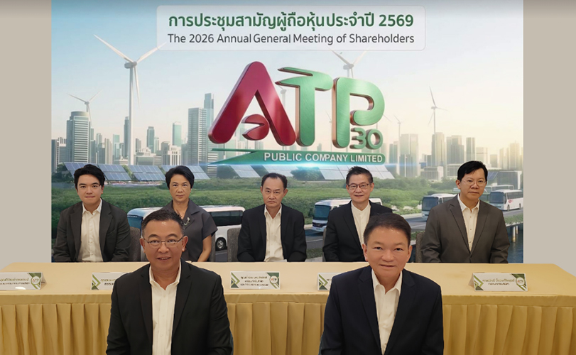 นายชาติชาย พานิชชีวะ ประธานกรรมการ นายปิยะ เตชากูล ประธานเจ้าหน้าที่บริหาร พร้อมด้วยคณะกรรมการและผู้บริหาร บมจ. เอทีพี 30 (ATP 30) จัดงานประชุมสามัญผู้ถือหุ้นประจำปี 2569 โดยที่ประชุมมีมติอนุมัติจ่ายเงินปันผลงวดปี 2568 จำนวน 0.04 บาทต่อหุ้น หรือ 46.65% ของกำไรสุทธิฯ กำหนด Record Date 8 เม.ย 2569 และจ่ายปันผล 24 เม.ย.2569 ณ ชีวาทัย ฮอลล์มาร์ค เอกมัย-รามอินทรา