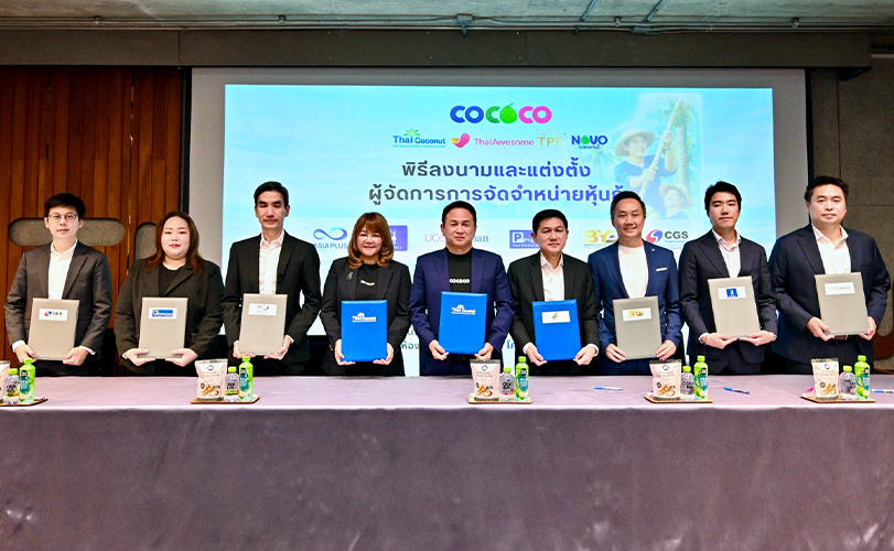 บริษัท ไทย โคโคนัท จำกัด (มหาชน) หรือ “COCOCO” ร่วมลงนามแต่งตั้งผู้จัดการ การจัดจำหน่ายหุ้นกู้อย่างเป็นทางการ 6 หลักทรัพย์ นำโดย บล. เอเซีย พลัส- บล. บลูเบลล์ – บล. ยูโอบี เคย์เฮียน (ประเทศไทย) - บล.ฟิลลิป (ประเทศไทย) - บล. บียอนด์ และบล. ซีจีเอส อินเตอร์เนชั่นแนล (ประเทศไทย) เพื่อเตรียมเสนอขายหุ้นกู้ให้แก่ผู้ลงทุนสถาบัน และ/หรือ ผู้ลงทุนรายใหญ่ เปิดให้จองซื้อในช่วง 27-29 เมษายน 2569 นี้ เพื่อรองรับแผนขยายธุรกิจ-ผลักดันแบรนด์สินค้าไทยให้เป็นที่ยอมรับในระดับสากล