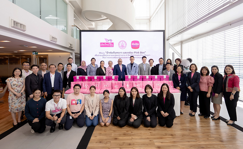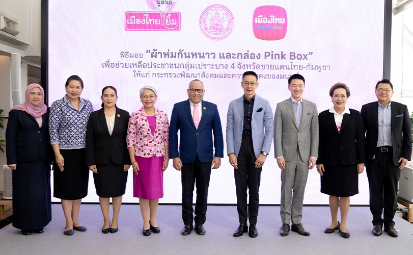 เมืองไทยประกันชีวิต และ มูลนิธิเมืองไทยยิ้ม ส่งมอบผ้าห่มกันหนาว และกล่อง Pink Box เพื่อช่วยเหลือประชาชนกลุ่มเปราะบางให้แก่ พม.