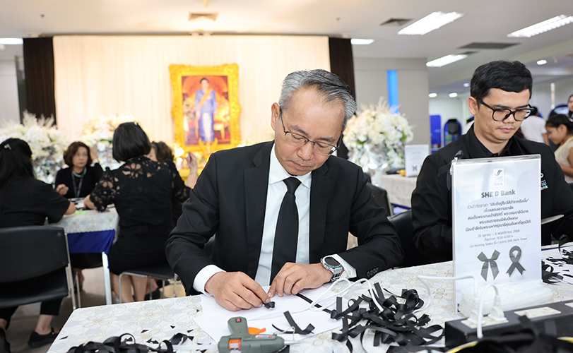 ธนาคารพัฒนาวิสาหกิจขนาดกลางและขนาดย่อมแห่งประเทศไทย (ธพว.) หรือ SME D Bank นำโดย นายพิชิต มิทราวงศ์ กรรมการผู้จัดการ พร้อมด้วยคณะผู้บริหารและพนักงาน ร่วมกิจกรรมจิตอาสา “ประดิษฐ์โบว์สีดำจากริบบิ้น” แสดงความอาลัยถวายแด่ สมเด็จพระนางเจ้าสิริกิติ์ พระบรมราชินีนาถ พระบรมราชชนนีพันปีหลวง เพื่อส่งมอบให้แก่ประชาชน ลูกค้าธนาคาร และผู้ประกอบการเอสเอ็มอี นำไปติดบนเครื่องแต่งกายเป็นสัญลักษณ์แห่งความอาลัย และแสดงความจงรักภักดี น้อมสำนึกในพระมหากรุณาธิคุณเป็นล้นพ้นอันหาที่สุดมิได้ โดยกิจกรรมดังกล่าวจัดต่อเนื่อง ระหว่างวันที่ 29 ตุลาคม – 5 พฤศจิกายน 2568 ณ Co-Working Space ชั้น 1 อาคาร SME Bank Tower