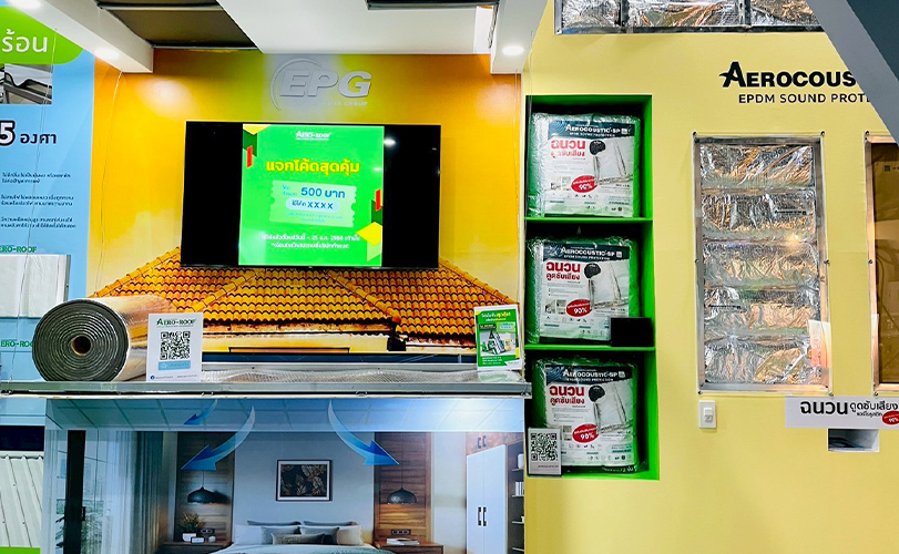 สำหรับการจัดแสดงสินค้าในครั้งนี้ AEROFLEX ได้จัดแสดงสินค้านวัตกรรมฉนวนกันความร้อนใต้หลังคา AERO-ROOF ใช้บุใต้หลังคา หรือฝ้าเพดาน เพื่อป้องกันความร้อนจากหลังคาเข้าสู่ตัวอาคาร ฉนวนกันความร้อนใต้หลังคา AERO-ROOF เป็นผู้ผลิตรายแรกที่ใช้ยางสังเคราะห์ ประเภท EPDM เคลือบผิวด้วยอลูมิเนียมฟอยล์เสริมเส้นใย มีกระบวนการผลิตที่ไม่ส่งผลกระทบต่อสภาพแวดล้อม รวมถึงไม่ก่อให้เกิดมลพิษต่อสังคมรอบข้างตลอดกระบวนการผลิต สนใจเยี่ยมชมบูธ บูธ H67-68, 95-96