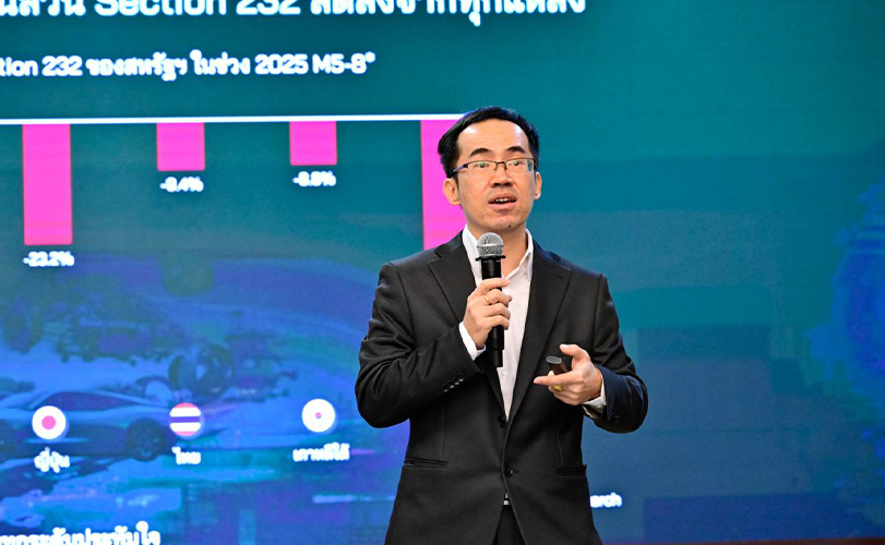 ดร. รุจิพันธ์ อัสสะรัตน์ ผู้ช่วยกรรมการผู้จัดการ บริษัท ศูนย์วิจัยกสิกรไทย จำกัด เผยว่า แม้ไทยมีสัดส่วนส่งออกรถยนต์ไปสหรัฐฯ น้อย แต่มาตรการภาษีนำเข้า Section 232 มีแนวโน้มส่งผลกระทบทางอ้อมต่อส่งออกรถยนต์ไทยไปตลาดโลก เพราะผู้ผลิตรายใหญ่ เช่น ญี่ปุ่นและเกาหลีใต้ อาจกระจายส่งออกไปตลาดอื่นมากขึ้น เพื่อลดการพึ่งพาสหรัฐฯ ซึ่งจะเพิ่มความรุนแรงของการแข่งขันในตลาดโลก ขณะเดียวกัน มาตรการนี้กระทบโดยตรงต่อการส่งออกชิ้นส่วนไทยไปสหรัฐฯ โดยมีสัดส่วนราว 26% ของมูลค่าส่งออกชิ้นส่วนไทย อย่างไรก็ดี ยางล้อขนาดเล็กของไทยยังได้เปรียบในด้านต้นทุนและคุณภาพ นอกจากนี้ ไทยยังได้รับการยกเว้นภาษี Section 232 ตามมาตรการ Import Adjustment Offset ราว 12% ของมูลค่าส่งออกชิ้นส่วน (ไม่รวมยางล้อ) ไปสหรัฐฯ มากกว่าญี่ปุ่นที่อยู่เพียง 3%