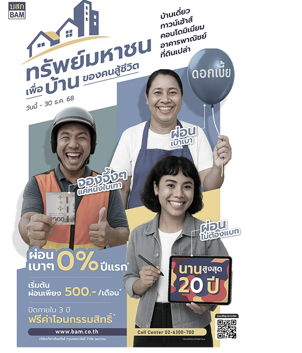 โครงการทรัพย์มหาชน เพื่อบ้านของคนสู้ชีวิต เปิดตัวเมื่อวันที่ 1 ตุลาคม 2568 ใช้เวลาเพียง 1 เดือน BAM สามารถช่วยให้ 285 ครอบครัว มีบ้านเป็นของตนเอง และภายในสิ้นเดือนธันวาคมนี้คาดว่าจะสามารถทำให้อีกไม่ต่ำกว่า 700 ครอบครัวได้เป็นเจ้าของทรัพย์มหาชนของ BAM ความสำเร็จของโครงการนี้ เป็นคำตอบของการสร้างสมดุลระหว่างกำไรทางธุรกิจและสังคมได้เป็นอย่างดี ในแง่ของการบริหารจัดการทรัพย์สินรอการขาย เราสามารถระบายทรัพย์เหล่านี้ออกไปทำให้ลดค่าใช้จ่ายในการถือครองได้อย่างมีประสิทธิภาพ ขณะเดียวกันยังเป็นการช่วยเหลือกลุ่มคนตัวเล็กให้เป็นเจ้าของที่อยู่อาศัยด้วยเงื่อนไขที่ผ่อนปรน