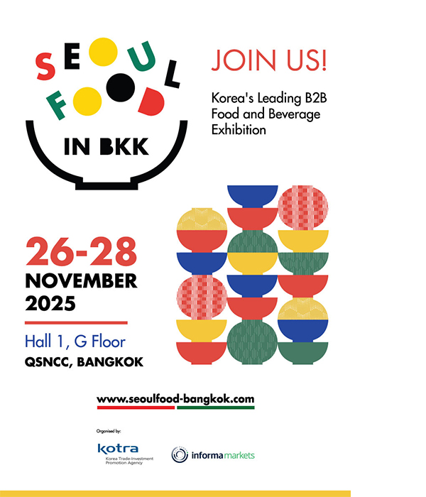 สำหรับการส่งเสริมความร่วมมือและความสัมพันธ์ระหว่างเกาหลีและไทยถือว่าเป็นพันธมิตรที่เหนียวแน่น ทั้งด้านเศรษฐกิจ สังคม และวัฒนธรรม ประเทศไทยยังเป็นจุดยุทธศาสตร์สำคัญของโลจิสติกส์และเป็นผู้นำในการบริโภคที่มีอิทธิพลต่อภูมิภาคอาเซียน ดังนั้น KOTRA มีเตรียมจัดงาน SEOUL FOOD in Bangkok 2025 ขึ้น ระหว่างวันที่ 26-28 พฤศจิกายน 2568 ณ ศูนย์การประชุมแห่งชาติสิริกิติ์ ซึ่งงาน SEOUL FOOD เป็น 1 ใน 4 งานแสดงสินค้าอาหารสำหรับมืออาชีพที่ใหญ่ที่สุดของเอเชีย และไทยเป็นประเทศแรกที่ได้รับเลือกให้จัดงานนี้ขึ้นในต่างประเทศ โดยผู้เข้าร่วมงานจะได้พบกับ การจัดแสดงสินค้าที่มีการนำเสนอ ทั้งนวัตกรรมเทคโนโลยีอาหารที่ผสานแนวคิดด้านสุขภาพและความยั่งยืน การเปิดประสบการณ์ในวัฒนธรรมเกาหลีที่แท้จริง ชิมอาหารเกาหลีที่หลากหลาย พร้อมชมการสาธิตการทำอาหารจากเชฟที่ได้แรงบันดาลใจจากวัฒนธรรมเกาหลี ภายใต้แนวคิด “K-Food นวัตกรรมอาหารแห่งอนาคต : ก้าวล้ำด้วยเทคโนโลยีเพื่อสุขภาพที่ดีและความยั่งยืนของโลก” (K-Food Innovation: Smart, Healthy & Sustainable)