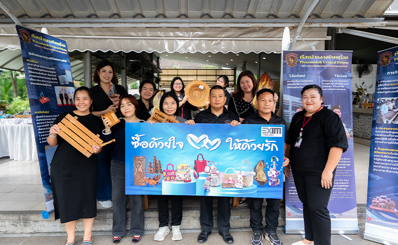 นายชลัช รัตนบุญนิธิ กรรมการผู้จัดการ ธนาคารเพื่อการส่งออกและนำเข้าแห่งประเทศไทย (EXIM BANK) พร้อมผู้บริหารและพนักงาน EXIM BANK ร่วมอุดหนุนสินค้าโครงการ “ซื้อด้วยใจ ให้ด้วยรัก” จัดขึ้นระหว่างวันที่ 20-21 พฤศจิกายน 2568 เพื่อสนับสนุนผลิตภัณฑ์จากการฝึกอาชีพของกลุ่มบุคคลที่ควรได้รับโอกาสทางสังคมจากเรือนจำจังหวัดพิษณุโลก เรือนจำกลางพิษณุโลก และทัณฑสถานหญิงพิษณุโลก ซึ่งจัดจำหน่ายผลิตภัณฑ์งานหัตถกรรมหลากหลายประเภท อาทิ กระเป๋าผ้า งานจักสาน งานไม้ ของตกแต่งบ้าน และตุ๊กตา ที่ผ่านกระบวนการผลิตอย่างประณีต มีคุณภาพดี และสามารถนำไปต่อยอดเป็นอาชีพเพื่อสร้างรายได้จริงหลังพ้นโทษ ณ EXIM BANK สำนักงานใหญ่