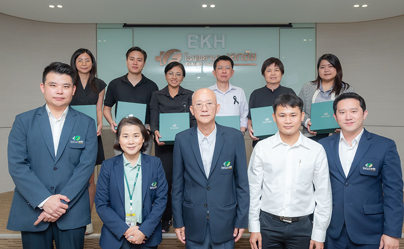 นายแพทย์อำนาจ เอื้ออารีมิตร กรรมการและผู้อำนวยการโรงพยาบาล คุณสุทธิพงศ์ ตั้งสัจจะพจน์ (ซ้ายสุด) กรรมการและผู้ช่วยผู้อำนวยการฝ่ายบัญชีและการเงิน พร้อมคณะผู้บริหาร บมจ.เอกชัยการแพทย์ (EKH) ให้การต้อนรับนักวิเคราะห์หลักทรัพย์ ในโอกาสให้เกียรติเข้ารับฟังข้อมูลภาพรวมการเติบโตของ EKH พร้อมนำเสนอศักยภาพแหล่งรายได้ใหม่ขององค์กร และเยี่ยมชมห้องปฎิบัติการตรวจสวนหลอดเลือดหัวใจและหลอดเลือดสมอง รวมถึงความคืบหน้าในการก่อสร้างอาคาร C โดยบริษัทฯ เชื่อว่าธุรกิจและผลการดำเนินงานในไตรมาส 4/2568 จะเติบโตในทิศทางที่ดี จากแนวโน้มการเข้ารับบริการรักษาและตรวจสุขภาพที่เพิ่มขึ้นอย่างต่อเนื่อง รวมถึง อัตราการครองเตียงผู้ป่วยใน (IPD) และจำนวนผู้ป่วยนอก (OPD) ณ ห้องประชุมสาคร 1 โรงพยาบาลเอกชัย