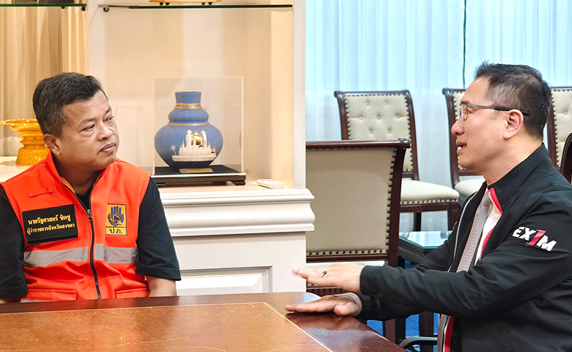นายชลัช รัตนบุญนิธิ กรรมการผู้จัดการ ธนาคารเพื่อการส่งออกและนำเข้าแห่งประเทศไทย (EXIM BANK) พร้อมผู้บริหาร EXIM BANK เข้าพบนายรัฐศาสตร์ ชิดชู ผู้ว่าราชการจังหวัดสงขลา เพื่อสื่อสารและนำเสนอมาตรการของ EXIM BANK ในการเร่งฟื้นฟูและเยียวยาผู้ประกอบการที่ได้รับผลกระทบจากอุทกภัยในพื้นที่อำเภอหาดใหญ่ จังหวัดสงขลา อาทิ มาตรการทางการเงินและการพัฒนาศักยภาพผู้ประกอบการ ครอบคลุมการช่วยเหลือด้านสภาพคล่อง การเข้าถึงแหล่งเงินทุนเพื่อฟื้นฟูกิจการ ตลอดจนการสนับสนุนผู้ประกอบการที่มีศักยภาพในการขยายตลาดทั้งในและต่างประเทศ โดยมุ่งหวังให้ผู้ประกอบการสามารถกลับมาดำเนินธุรกิจได้อย่างเข้มแข็งและยั่งยืน โดยยืนยันความมุ่งมั่นของ EXIM BANK ในการทำงานร่วมกับหน่วยงานภาครัฐในระดับพื้นที่อย่างใกล้ชิด เพื่อสนับสนุนผู้ประกอบการไทยให้สามารถปรับตัว ฟื้นฟู และเติบโตได้อย่างยั่งยืน ขณะเดียวกัน ยังแลกเปลี่ยนข้อคิดเห็นเกี่ยวกับสภาพปัญหาและความต้องการของผู้ประกอบการในจังหวัดสงขลาและภาคใต้ เพื่อให้มาตรการช่วยเหลือสามารถตอบโจทย์สถานการณ์จริง และเกิดประโยชน์สูงสุดต่อการฟื้นฟูเศรษฐกิจภาคใต้ในระยะยาว ณ ศาลากลางจังหวัดสงขลา