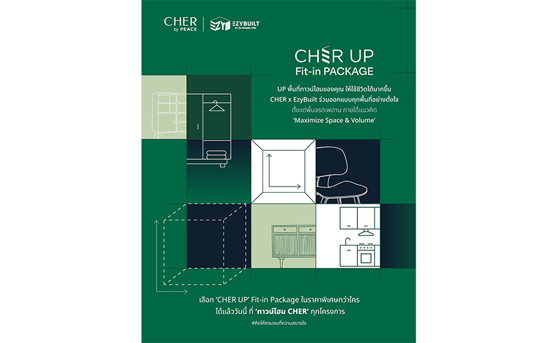 ทั้งนี้ ผู้ที่สนใจสามารถเลือก “CHER UP” Fit-in Package ในราคาพิเศษกว่าใครได้แล้ววันนี้ที่ “ทาวน์โฮม CHER” ทุกโครงการ หรือสอบถามรายละเอียดเพิ่มเติมได้ที่ www.peaceandliving.co.th และ LINE Official Account: @peaceandliving