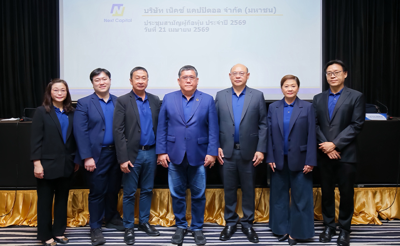 นายชัยวัฒน์ อุทัยวรรณ์ ประธานกรรมการ และนายพุฒิพันธ์ เตยะราชกุล รักษาการประธานเจ้าหน้าที่บริหาร บริษัท เน็คซ์ แคปปิตอล จำกัด (มหาชน) หรือ NCAP พร้อมด้วยคณะกรรมการบริษัท ร่วมถ่ายภาพภายหลังการประชุมสามัญผู้ถือหุ้นประจำปี 2569 ในรูปแบบ Hybrid ณ โรงแรมอัมรา กรุงเทพฯ โดยที่ประชุมมีมติอนุมัติทุกวาระสำคัญตามที่คณะกรรมการเสนอ
