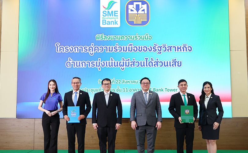 นายจุลพันธ์ อมรวิวัฒน์ รัฐมนตรีช่วยว่าการกระทรวงการคลัง ในฐานะประธานกรรมการธนาคารเพื่อการเกษตรและสหกรณ์การเกษตร (ธ.ก.ส.) พร้อมด้วยนายฉัตรชัย ศิริไล ผู้จัดการ ธ.ก.ส. และ นายเดชา จาตุธนานันท์ หัวหน้าผู้ตรวจราชการกระทรวงอุตสาหกรรม ในฐานะประธานกรรมการ ธนาคารพัฒนาวิสาหกิจขนาดกลางและขนาดย่อมแห่งประเทศไทย (ธพว. หรือ SME D Bank)พร้อมด้วยนายพิชิต มิทราวงศ์ กรรมการผู้จัดการ SME D Bank ร่วมพิธีลงนาม “โครงการคู่ความร่วมมือของรัฐวิสาหกิจ ด้านการมุ่งเน้นผู้มีส่วนได้ส่วนเสีย” ระหว่าง ธ.ก.ส. และ SME D Bank ณ ห้องประชุมแก้ววิเชียร ชั้น 11 SME D Bank สำนักงานใหญ่ อาคาร SME Bank Tower