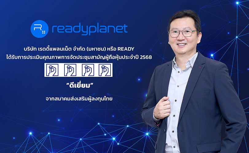 บริษัท เรดดี้แพลนเน็ต จำกัด (มหาชน) หรือ READY ผู้ประกอบธุรกิจให้บริการแพลตฟอร์มการขายและการตลาดดิจิทัลแบบรวมเป็นหนึ่งเดียว (All-in-One Sales and Marketing Platform) ได้รับการประเมินจากโครงการประเมินคุณภาพการจัดประชุมสามัญผู้ถือหุ้น (AGM Checklist) ประจำปี 2568 ในระดับ “ดีเยี่ยม” จากสมาคมส่งเสริมผู้ลงทุนไทย (Thai Investors Association) และสภาธุรกิจตลาดทุนไทย
