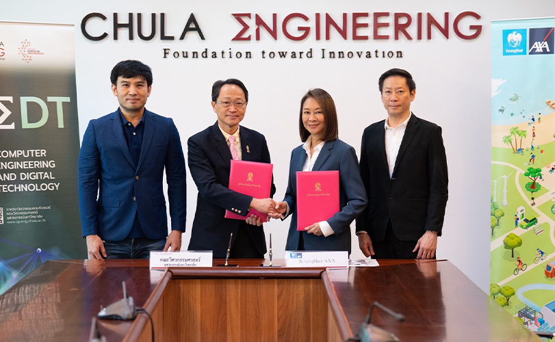 บมจ.กรุงไทย-แอกซ่า ประกันชีวิต ร่วมกับ จุฬาลงกรณ์มหาวิทยาลัย ลงนามบันทึกข้อตกลงความร่วมมือ เพื่อพัฒนาการศึกษาและการเรียนรู้ด้านคอมพิวเตอร์และเทคโนโลยีดิจิทัลที่ยั่งยืน นำโดย คุณสรัสวดี คุปตพงศ์ ประธานเจ้าหน้าที่บริหาร ฝ่ายทรัพยากรบุคคล กรุงไทย-แอกซ่า ประกันชีวิต (คนขวา) พร้อมด้วย รองศาสตราจารย์ ดร.วิทยา วัณณสุโภประสิทธิ์ คณบดีคณะวิศวกรรมศาสตร์ จุฬาลงกรณ์มหาวิทยาลัย (คนซ้าย) ร่วมลงนามบันทึกข้อตกลงความร่วมมือ เพื่อพัฒนาหลักสูตรวิศวกรรมศาสตรบัณฑิต สาขาวิชาวิศวกรรมคอมพิวเตอร์และเทคโนโลยีดิจิทัล ภายใต้การจัดการศึกษาที่แตกต่างจากมาตรฐานการอุดมศึกษา ณ ห้องสวนรวมใจ 2 จุฬาลงกรณ์มหาวิทยาลัย