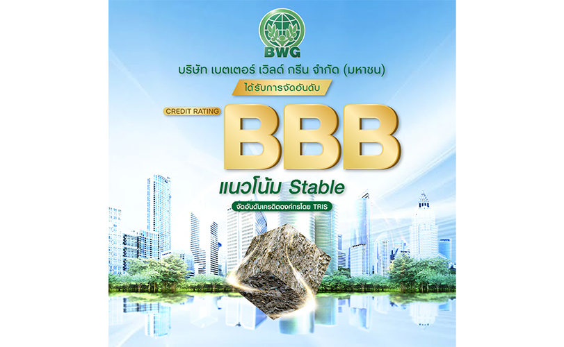บริษัท เบตเตอร์ เวิลด์ กรีน จำกัด (มหาชน) หรือ BWG ได้รับการปรับเพิ่มอันดับความน่าเชื่อถือขององค์กรขึ้นถึง 2 ระดับในครั้งเดียว จากระดับ ‘BB+’ เป็น ‘BBB’ พร้อมให้แนวโน้มอันดับเครดิต “คงที่” (Stable) จากบริษัท ทริสเรทติ้ง จำกัด การปรับอันดับเครดิตครั้งนี้ เกิดจากสภาพการเงินที่มีความแข็งแรง สภาพคล่องสูง หนี้สินลดต่ำลงอย่างมีนัยสำคัญ เสริมสร้างสถานะผู้นำในธุรกิจการบริหารจัดการกากอุตสาหกรรมเพื่อความยั่งยืน ซึ่งสะท้อนถึงความสำเร็จอย่างเป็นรูปธรรมจากกลยุทธ์การบริหารงานที่เฉียบคม