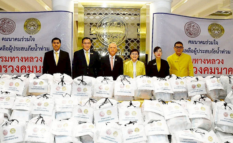พิพัฒน์ - มัลลิกา” นำทีมคมนาคมปล่อยคาราวานถุงยังชีพ 7,000 ถุง สู้ภัยน้ำท่วม พร้อมสั่งเร่งฟื้นฟูเส้นทางคมนาคม