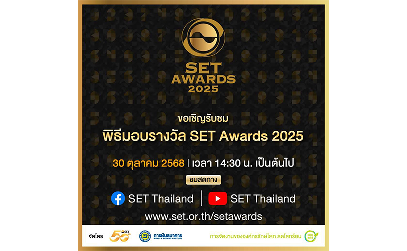 รับชมพิธีประกาศผลและมอบรางวัล SET Awards 2025 วันที่ 30 ต.ค. นี้ ทาง www.set.or.th