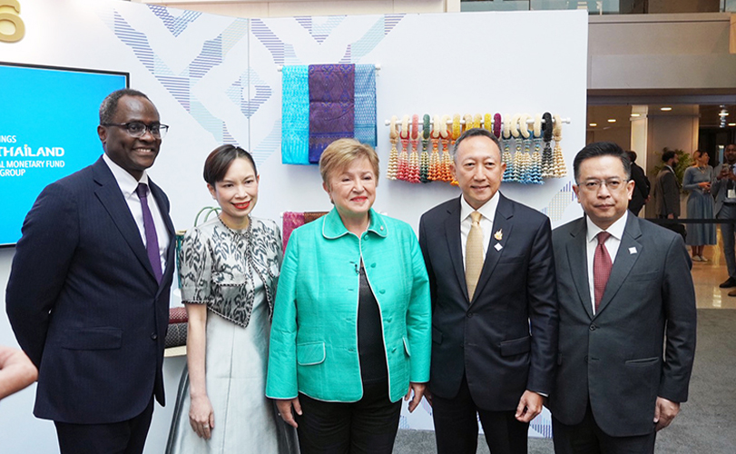 นายวรภัค ธันยาวงษ์ รัฐมนตรีช่วยว่าการกระทรวงการคลัง และนายวินิจ วิเศษสุวรรณภูมิ ผู้อำนวยการสำนักงานเศรษฐกิจการคลัง ให้การต้อนรับ Ms. Kristalina Georgiava กรรมการจัดการกองทุนการเงินระหว่างประเทศ (IMF) ณ บูธประชาสัมพันธ์การเป็นเจ้าภาพการประชุมประจำปีสภาผู้ว่าการธนาคารโลกและกองทุนการเงินระหว่างประเทศในปี 2569 ของประเทศไทย ในห้วงการประชุมประจำปีสภาผู้ว่าการธนาคารโลกและกองทุนกากรเงินระหว่างประเทศ ปี 2568 ณ กรุงวอชิงตัน ดี.ซี. สหรัฐอเมริกา