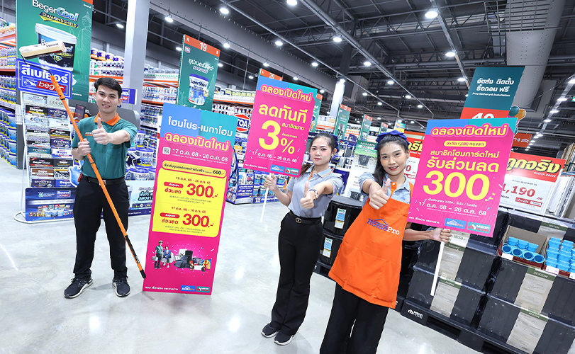 โฮมโปร x เมกาโฮม พุทธมณฑลสาย 4 ใช้งบลงทุนกว่า 570 ล้านบาท บนพื้นที่รวมกว่า 13,277 ตร.ม. วางบทบาทเป็น ศูนย์กลางที่คนทำบ้านและคนทำงานช่างได้มาเจอกัน ด้วยพื้นที่ขายสองโซนที่ออกแบบมาให้เชื่อมต่อกันอย่างลงตัว ผสานแรงบันดาลใจจากไลฟ์สไตล์คนเมืองเข้ากับอุปกรณ์การทำงานจริง ไม่ว่าจะเป็นพื้นที่ห้องตัวอย่างดีไซน์ตอบโจทย์คนเมือง ไปจนถึงพื้นที่ให้ลูกค้าได้สัมผัสของแต่งบ้านจริง ทั้งเฟอร์นิเจอร์ เครื่องใช้ไฟฟ้า เครื่องนอน รวมถึงแผนกห้องครัว และห้องน้ำที่มีครบทุกองค์ประกอบ เส้นทางช้อปยังเชื่อมต่อสู่โซนวัสดุก่อสร้างขนาดใหญ่ ครบทั้ง เหล็ก ปูน สี ระบบน้ำ–ไฟ และเครื่องมือหนักที่ช่างและโรงงานใช้จริง พร้อมมีทีมที่ปรึกษาและทีมช่างโฮมโปร – มือโปรประจำบ้านคุณ ที่คอยดูแล ให้คำแนะนำ ออกแบบ และเลือกสเปกสินค้าได้แบบครบวงจร ในรูปแบบ One Stop Shopping ภายในยังออกแบบพื้นที่บริการให้รองรับลูกค้าทุกกลุ่ม ตั้งแต่พื้นที่จอดรถที่รองรับได้เกือบ 200 คัน โซนรับ–ส่งสินค้าใกล้ประตู เพื่อความสะดวกในการขนส่ง ไปจนถึงจุดพักผ่อนด้วยร้านอาหารและร้านเครื่องดื่มชั้นนำ สะท้อนแนวคิดของโฮมโปรในการสร้าง “ประสบการณ์ช้อปที่คล่องตัวและคิดเผื่อครบทุกความต้องการ” ของลูกค้าอย่างแท้จริง