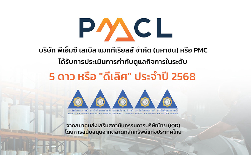 บริษัท พีเอ็มซี เลเบิล แมททีเรียลส์ จำกัด (มหาชน) หรือ PMC ผู้ประกอบธุรกิจผลิตและจำหน่ายผลิตภัณฑ์สติ๊กเกอร์เปล่า (Sticker) หรือฉลากกาว (Self-Adhesive Label) ซึ่งเป็นวัตถุดิบต้นน้ำสำหรับการผลิตฉลากสินค้าและฉลากบรรจุภัณฑ์ โดยจำหน่ายให้แก่ลูกค้าทั้งในประเทศและต่างประเทศ โชว์ศักยภาพความเป็นเลิศด้านการดำเนินงาน ได้รับคะแนนการประเมินการกำกับดูแลกิจการในระดับ 5 ดาว หรือ “ดีเลิศ” (Excellent CG Scoring) และติดอันดับ Top Quartile ของกลุ่มบริษัทที่มีมูลค่าตลาดไม่เกิน 1,500 ล้านบาท จากโครงการสำรวจการกำกับดูแลกิจการบริษัทจดทะเบียนไทย (CGR) ประจำปี 2568 ซึ่งจัดขึ้นโดยสมาคมส่งเสริมสถาบันกรรมการบริษัทไทย (IOD) ภายใต้การสนับสนุนของตลาดหลักทรัพย์แห่งประเทศไทย และสำนักงานคณะกรรมการกำกับหลักทรัพย์และตลาดหลักทรัพย์ (ก.ล.ต.)