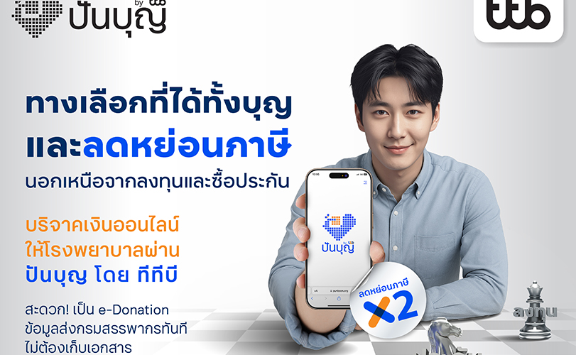 “ปันบุญ โดย ทีทีบี” เว็บไซต์บริจาคเงินออนไลน์ ที่เปิดโอกาสให้ทุกคนได้ร่วมช่วยเหลือโรงพยาบาลท้องถิ่นและองค์กรสาธารณกุศลที่น่าเชื่อถือทั่วประเทศ พร้อมรับสิทธิลดหย่อนภาษีได้สูงสุด 2 เท่าของยอดเงินบริจาค และไม่เกิน 10% ของเงินได้หลังหักค่าใช้จ่ายและค่าลดหย่อนอื่น ๆ ตามเงื่อนไขของกรมสรรพากร โดยปันบุญได้เชื่อมต่อระบบ e-Donation ของกรมสรรพากร ทำให้ข้อมูลส่งตรงไปยังกรมสรรพากรทันที ผู้บริจาคได้รับความสะดวกยิ่งขึ้น และหมดกังวลเรื่องการหาเอกสารไม่เจอ สำหรับท่านที่ต้องการตรวจสอบข้อมูลการบริจาคเงินให้แก่องค์กรที่เข้าร่วมโครงการ e-Donation สามารถตรวจสอบจากเว็บไซต์กรมสรรพากร ในหัวข้อ My Tax Account