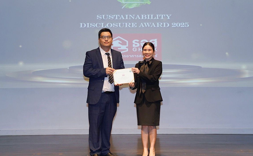 นายกมลภพ วีระพละ กรรมการผู้จัดการธนาคารอาคารสงเคราะห์ (ธอส.) เปิดเผยว่า ธอส. ได้รับ “รางวัลเกียรติคุณ Sustainability Disclosure Award ประจำปี 2568” ในงานพิธีมอบรางวัล การเปิดเผยข้อมูลความยั่งยืนประจำปี 2568 จากสถาบันไทยพัฒน์ โดยมีนางสาววณิฐารัตน์ บุญศุภนิตย์ ผู้ช่วยกรรมการผู้จัดการ สายงานสื่อสารและภาพลักษณ์องค์กร เป็นผู้แทนธนาคาร รับรางวัลจาก นายวรณัฐ เพียรธรรม ผู้อำนวยการสถาบันไทยพัฒน์ ประธานในพิธีมอบรางวัล ซึ่ง ธอส. ได้รับ รางวัลเกียรติคุณ Sustainability Disclosure Award เป็นปีที่ 5 ติดต่อกัน โดยเป็นรางวัลสูงสุดที่มอบให้ แก่องค์กรที่เปิดเผยข้อมูลการดำเนินงานด้านการพัฒนาความยั่งยืนที่เป็นไปตามมาตรฐานสากล ครอบคลุมการดำเนินงานในมิติด้านสิ่งแวดล้อม สังคม และการกำกับดูแลกิจการที่ดี โดยพิจารณาจากหลักเกณฑ์ 3 ด้าน ประกอบด้วย (1) ความสมบูรณ์ของเนื้อหา (2) ความเชื่อถือได้ของเนื้อหา และ (3) การสื่อสารและนำเสนอเนื้อหาของข้อมูลที่เปิดเผยต่อสาธารณะ โดย ธอส.ได้รวบรวมข้อมูลผลการดำเนินงานที่สอดคล้อง กับมาตรฐานสากล GRI Standards (Global Reporting Initiative Standards) และเปิดเผยข้อมูลผลการดำเนินงานด้านการพัฒนาความยั่งยืนผ่านการจัดทำรายงานการพัฒนาความยั่งยืนประจำปี 2567 สะท้อนการเป็นองค์กรที่มีการเปิดเผยข้อมูลการดำเนินงานที่เป็นมาตรฐานสากล นำไปสู่การพัฒนาองค์กรเพื่อความยั่งยืน