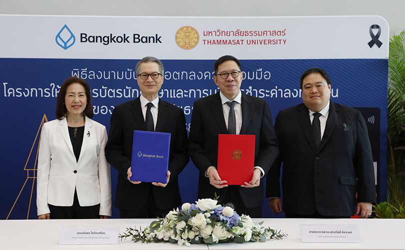 มหาวิทยาลัยธรรมศาสตร์ และธนาคารกรุงเทพ จำกัด (มหาชน) ลงนามบันทึกข้อตกลงความร่วมมือ (MOU) ในโครงการให้บริการบัตรนักศึกษา และการบริการชำระค่าลงทะเบียนของมหาวิทยาลัยธรรมศาสตร์ ปีการศึกษา 2568-2572 เพื่อยกระดับโครงสร้างพื้นฐานดิจิทัลและระบบการให้บริการของมหาวิทยาลัยอย่างครบวงจร โดยมี ศาสตราจารย์ ดร.ศุภสวัสดิ์ ชัชวาลย์ อธิการบดี มหาวิทยาลัยธรรมศาสตร์ และ นายจรัมพร โชติกเสถียร กรรมการบริหาร ธนาคารกรุงเทพ จำกัด (มหาชน) ร่วมลงนามในครั้งนี้ ณ มหาวิทยาลัยธรรมศาสตร์