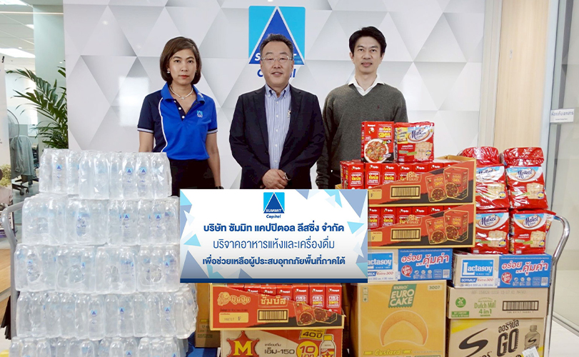 คุณโยซูเกะ อูนิกาเมะ ประธานบริษัทและประธานเจ้าหน้าที่บริหาร พร้อมด้วยคณะผู้บริหาร บริษัท ซัมมิท แคปปิตอล ลีสซิ่ง จำกัด ร่วมส่งมอบน้ำดื่มจำนวน 500 ขวด อาหารแห้ง เครื่องดื่ม และของใช้จำเป็น ให้แก่ กองทัพเรือ เพื่อนำไปกระจายสู่พื้นที่ประสบภัยต่าง ๆ ในพื้นที่ภาคใต้ตามความเร่งด่วน โดยมีเป้าหมายเพื่อบรรเทาความเดือดร้อนในเบื้องต้น และช่วยให้ประชาชนสามารถดำรงชีพได้ในช่วงสถานการณ์ฉุกเฉิน