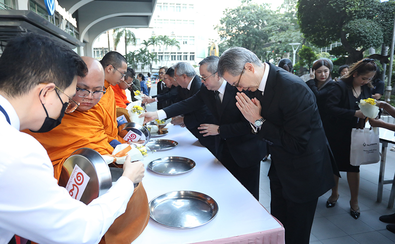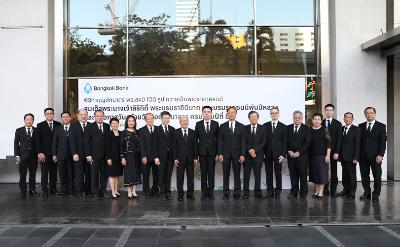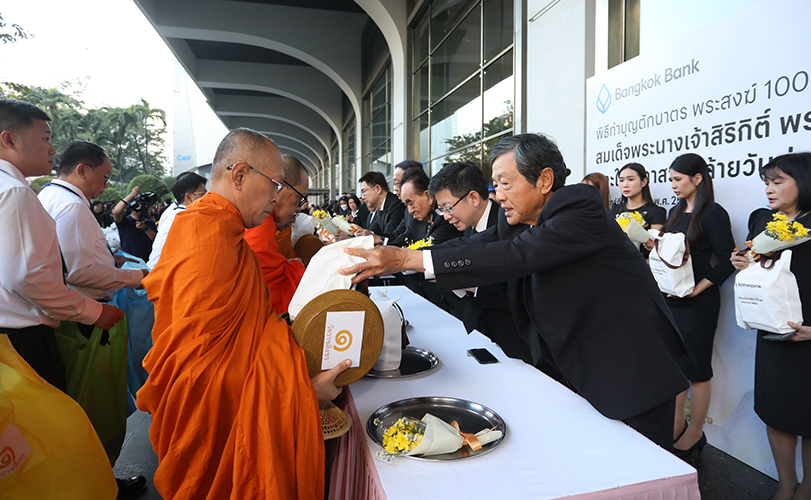 นายอมร จันทรสมบูรณ์ นายอรุณ จิรชวาลา นายศิริ จิระพงษ์พันธ์ นายพิเชฐ ดุรงคเวโรจน์ นายบัณฑิต เอื้ออาภรณ์ นายวีระพัฒน์ ถกลศรี นายจรัมพร โชติกเสถียร กรรมการธนาคาร และนายกอบศักดิ์ ภูตระกูล กรรมการรองผู้จัดการใหญ่ พร้อมด้วยคณะผู้บริหาร และพนักงานธนาคารกรุงเทพ จำกัด (มหาชน) ร่วมทำบุญตักบาตรพระสงฆ์ 100 รูป ถวายเป็นพระราชกุศลแด่ สมเด็จพระนางเจ้าสิริกิติ์ พระบรมราชินีนาถ พระบรมราชชนนีพันปีหลวง เพื่อแสดงออกถึงความจงรักภักดี และน้อมสำนึกในพระมหากรุณาธิคุณอันหาที่สุดมิได้ ที่ทรงมีต่อพสกนิกรชาวไทยมาอย่างยาวนาน และในโอกาสวันคล้ายวันก่อตั้งธนาคารครบรอบปีที่ 81 เพื่อสร้างความเป็นสิริมงคลในวาระที่ธนาคารกรุงเทพ ก้าวเข้าสู่ทศวรรษที่ 9 ด้วยเจตนารมณ์การเป็น “เพื่อนคู่คิด มิตรคู่บ้าน” ในวันจันทร์ที่ 1 ธันวาคม 2568 โดยธนาคาร ได้นิมนต์พระสงฆ์ 100 รูป จาก 5 พระอารามหลวง ได้แก่ วัดพระเชตุพนวิมลมังคลารามราชวรมหาวิหาร วัดเทพศิรินทราวาสราชวรวิหาร วัดปทุมคงคาราชวรวิหาร วัดไตรมิตรวิทยารามวรวิหาร และวัดราชสิงขร พระอารามหลวง เพื่อประกอบพิธีสงฆ์และรับบิณฑบาต ณ บริเวณลานหน้าอาคารสำนักงานใหญ่ ธนาคารกรุงเทพ ถนนสีลม