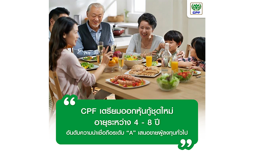 บริษัท เจริญโภคภัณฑ์อาหาร จำกัด (มหาชน) (“CPF”) ผู้ดำเนินธุรกิจเกษตรอุตสาหกรรมและอาหารแบบครบวงจรภายใต้วิสัยทัศน์ “ครัวของโลก” เตรียมเสนอขายหุ้นกู้ชนิดระบุชื่อผู้ถือ ประเภทไม่ด้อยสิทธิ ไม่มีประกัน และมีผู้แทนผู้ถือหุ้นกู้ ให้แก่ผู้ลงทุนทั่วไป จำนวน 3 รุ่น ได้แก่ หุ้นกู้อายุ 4 ปี 6 ปี และ 8 ปี อัตราดอกเบี้ยจะประกาศให้ทราบอีกครั้ง คาดเสนอขายวันที่ 20-22 มกราคม พ.ศ. 2569 ผ่าน 11 สถาบันการเงินชั้นนำ ได้แก่ ธนาคารกรุงเทพ ธนาคารกรุงไทย ธนาคารกสิกรไทย ธนาคารไทยพาณิชย์ ธนาคารทหารไทยธนชาต ธนาคารยูโอบี ธนาคารซีไอเอ็มบี ไทย บริษัทหลักทรัพย์ เกียรตินาคินภัทร บริษัทหลักทรัพย์ เอเซีย พลัส บริษัทหลักทรัพย์ กรุงไทย เอ็กซ์สปริง และบริษัทหลักทรัพย์ หยวนต้า (ประเทศไทย) ผ่านทางสาขาและช่องทางออนไลน์ รวมถึงการขายผ่านแอปพลิเคชัน TrueMoney Wallet