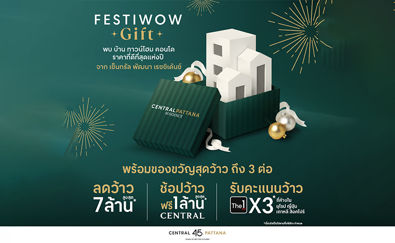 เพื่อตอบแทนลูกค้าคนสำคัญภายใต้ความสำเร็จดังกล่าว เซ็นทรัลพัฒนา เรซซิเด้นซ์ จึงขอมอบของขวัญสุดยิ่งใหญ่ เพื่อฉลองช่วงเวลาแห่งความสุขสุดว้าวววว!! ส่งท้ายปีด้วยแคมเปญ “FESTI ‘WOW’ GIFT” ผ่านสิทธิพิเศษสุดว้าวถึง 3 ต่อเมื่อซื้อบ้าน ทาวน์โฮม คอนโดฯ ไม่ว่าจะเป็น