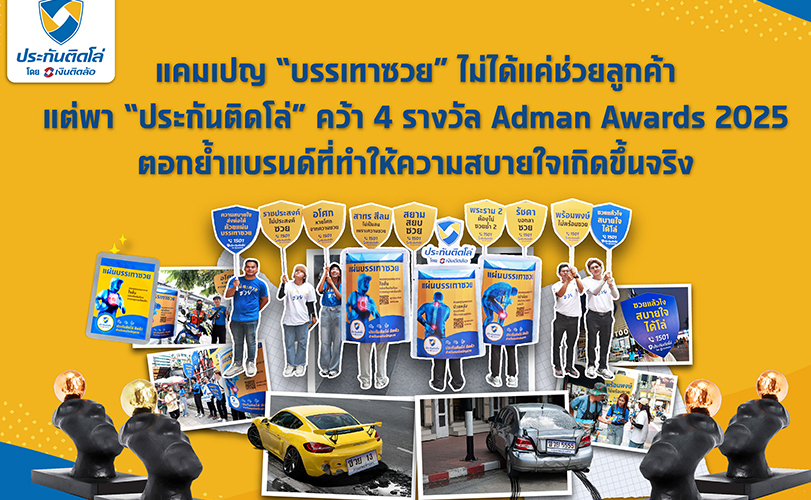 “ประกันติดโล่” โบรกเกอร์ บริหารโดย บมจ. เงินติดล้อ บริษัทในกลุ่ม Tidlor Holdings (TIDLOR) ตอกย้ำความสำเร็จในฐานะเซอร์วิสโบรกเกอร์ประกันภัยที่เข้าใจ Insight คนไทย ด้วยการคว้า 4 รางวัล บนเวที Adman Awards & Symposium 2025 จากแคมเปญ “บรรเทาซวย” ที่สร้างกระแสการตระหนักรู้ถึงความสำคัญของการมีประกันภัย ผ่านการสื่อสารอย่างสร้างสรรค์ ได้แก่