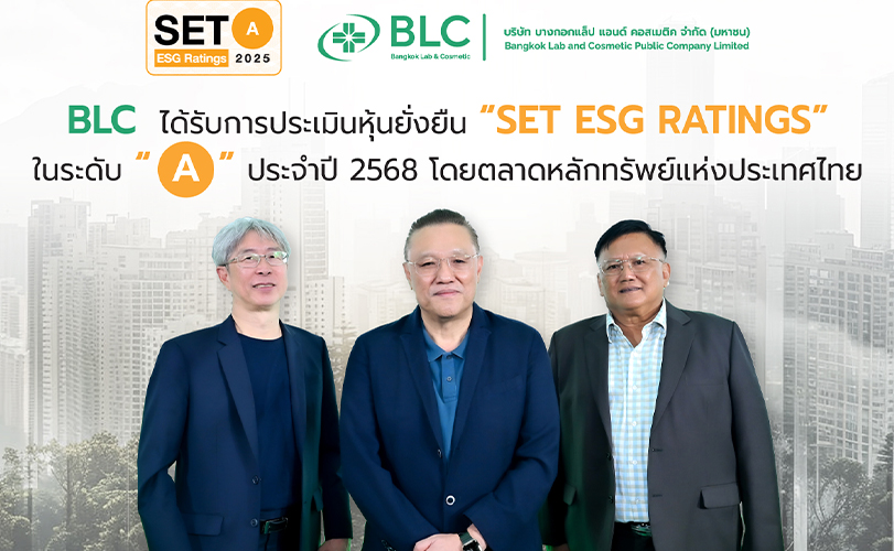 บมจ. บางกอกแล็ป แอนด์ คอสเมติค หรือ BLC เดินหน้าตอกย้ำความแข็งแกร่งในฐานะหุ้นเมกะเทรนด์ด้านสุขภาพ (Healthcare) ชั้นนำของไทย ประกาศความสำเร็จต่อเนื่องด้วยการได้รับคัดเลือกให้อยู่ในรายชื่อหุ้นยั่งยืน SET ESG Ratings ประจำปี 2568 ที่ระดับ “A” ในกลุ่มสินค้าอุปโภคบริโภค จากตลาดหลักทรัพย์แห่งประเทศไทย สะท้อนศักยภาพการบริหารงานที่โดดเด่นทั้งมิติเศรษฐกิจ สังคม และสิ่งแวดล้อม ตอกย้ำวิสัยทัศน์การเป็นผู้นำนวัตกรรมสุขภาพที่สร้างคุณค่าให้ผู้บริโภค ควบคู่ไปกับการดูแลโลกตามแนวทางความยั่งยืน