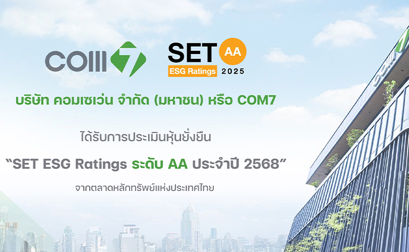 COM7 คว้าหุ้นยั่งยืน SET ESG Ratings ประจำปี 2568 ระดับ “AA” ต่อเนื่องเป็นปีที่ 2