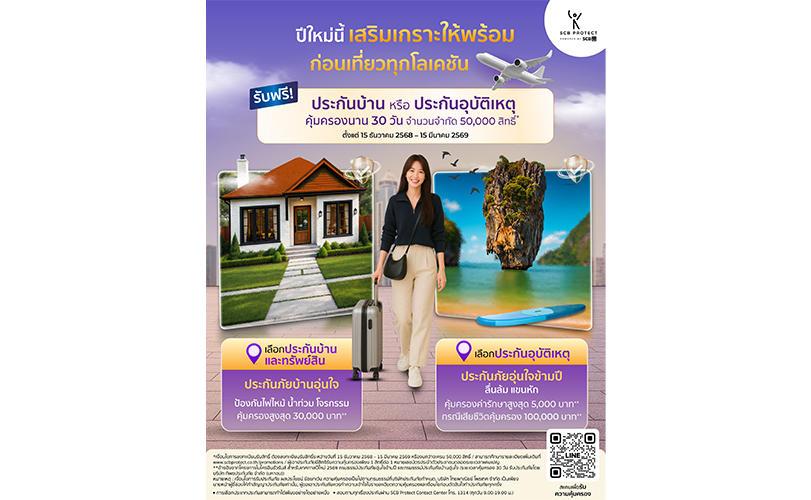 บริษัท ไทยพาณิชย์ โพรเทค จำกัด มอบความอุ่นใจรับช่วงเทศกาลปีใหม่ 2569 ผ่านแคมเปญพิเศษ “เสริมเกราะปีใหม่ ก่อนเที่ยวทุกโลเคชัน” ด้วยการมอบฟรีประกันบ้านและทรัพย์สิน หรือประกันอุบัติเหตุ รวมจำนวน 50,000 สิทธิ์ เพื่อช่วยลดความเสี่ยงทั้งจากเหตุการณ์ระหว่างเดินทางและความกังวลใจเมื่อต้องทิ้งบ้านไว้นานในช่วงวันหยุดยาว สิทธิพิเศษนี้เปิดให้ประชาชนทั่วไปที่มีสัญชาติไทย อายุตั้งแต่ 15–70 ปีบริบูรณ์ ลงทะเบียนรับความคุ้มครองได้ตั้งแต่วันที่ 15 ธันวาคม 2568 – 15 มีนาคม 2569 หรือจนกว่าสิทธิ์จะครบจำนวน
