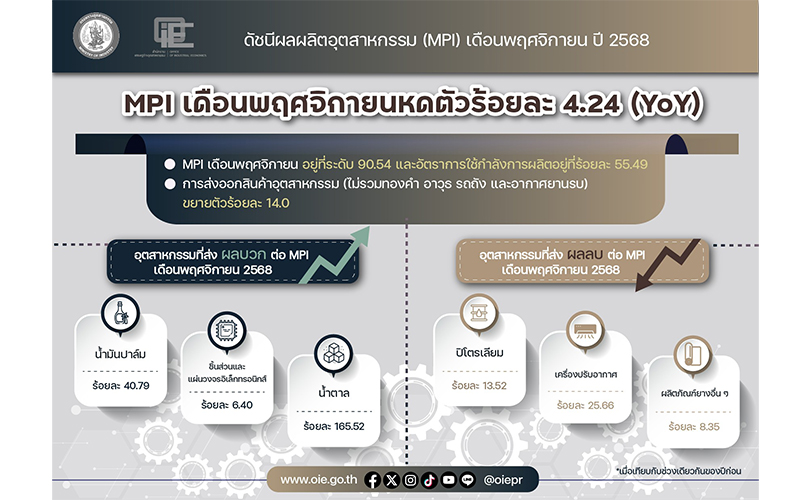 MPI พ.ย. 68 หดตัวที่ร้อยละ 4.24 รับผลกระทบชายแดน-น้ำท่วม