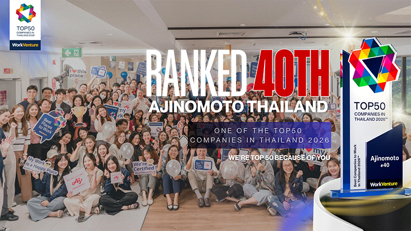บริษัท อายิโนะโมะโต๊ะ (ประเทศไทย) จำกัด องค์กรชั้นนำระดับโลกด้านอาหารและโภชนาการ ภายใต้ปรัชญา “กินดี มีสุข (Eat Well, Live Well.)” สร้างอีกหนึ่งความภาคภูมิใจ ด้วยการคว้ารางวัล “Top50 Companies in Thailand 2026™” ติดอันดับที่ 40 บริษัทที่คนรุ่นใหม่อยากร่วมงานด้วยมากที่สุด โดย WorkVenture จากกว่า 720 องค์กรชั้นนำ ผ่านการสำรวจความคิดเห็นของกลุ่มคนรุ่นใหม่อายุ 22–35 ปี ในเขตกรุงเทพฯ และปริมณฑล นับเป็นปีแรกที่อายิโนะโมะโต๊ะได้รับรางวัลอันทรงคุณค่านี้ สะท้อนถึงความสำเร็จในการปรับตัวขององค์กรให้สอดรับกับโลกการทำงานยุคใหม่ โดยให้ความสำคัญกับ Well-being ของพนักงานอย่างรอบด้าน ควบคู่ไปกับโอกาสในการเติบโตในสายอาชีพ และการสร้างประสบการณ์การทำงานที่มีความหมาย