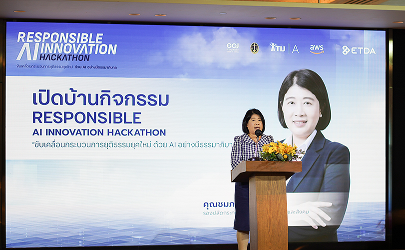 กระทรวงดิจิทัลเพื่อเศรษฐกิจและสังคม (ดีอี) สำนักงานพัฒนาธุรกรรมทางอิเล็กทรอนิกส์ (สพธอ.) หรือ ETDA (เอ็ตด้า) โดย ศูนย์ธรรมาภิบาลปัญญาประดิษฐ์ (AIGC) ร่วมกับ สำนักงานศาลยุติธรรม สำนักงานศาลปกครอง สำนักพัฒนาบุคลากรเพื่อการยุติธรรม สถาบันเพื่อการยุติธรรมแห่งประเทศไทย (TIJ Academy) และบริษัท อะเมซอน เว็บ เซอร์วิสเซส (AWS) เดินหน้าเวที “Responsible AI Innovation Hackathon: AI for Justice” ประเดิมกิจกรรมปฐมนิเทศและฝึกอบรม เตรียมพร้อม 10 ทีมผู้ผ่านเข้ารอบ ไปกับเหล่าผู้เชี่ยวชาญด้าน AI และผู้ทรงคุณวุฒิด้านกระบวนการยุติธรรมไทยเพื่อร่วมพัฒนาโซลูชัน AI ที่ตอบโจทย์กระบวนการยุติธรรมไทย ภายใต้หลักจริยธรรมและธรรมาภิบาลที่มาพร้อมความรับผิดชอบ