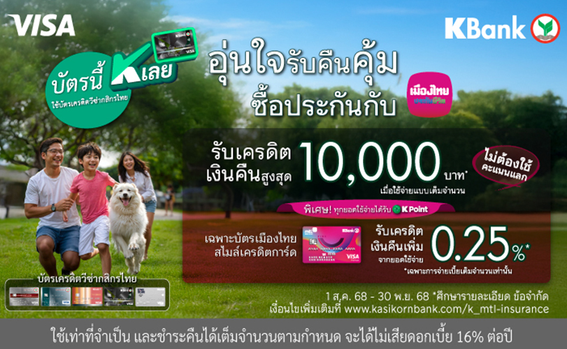 เมืองไทยประกันชีวิต จับมือ ธนาคารกสิกรไทย มอบความอุ่นใจพร้อมโปรโมชันคืนคุ้ม แก่สมาชิกเมืองไทยสไมล์เครดิตการ์ด